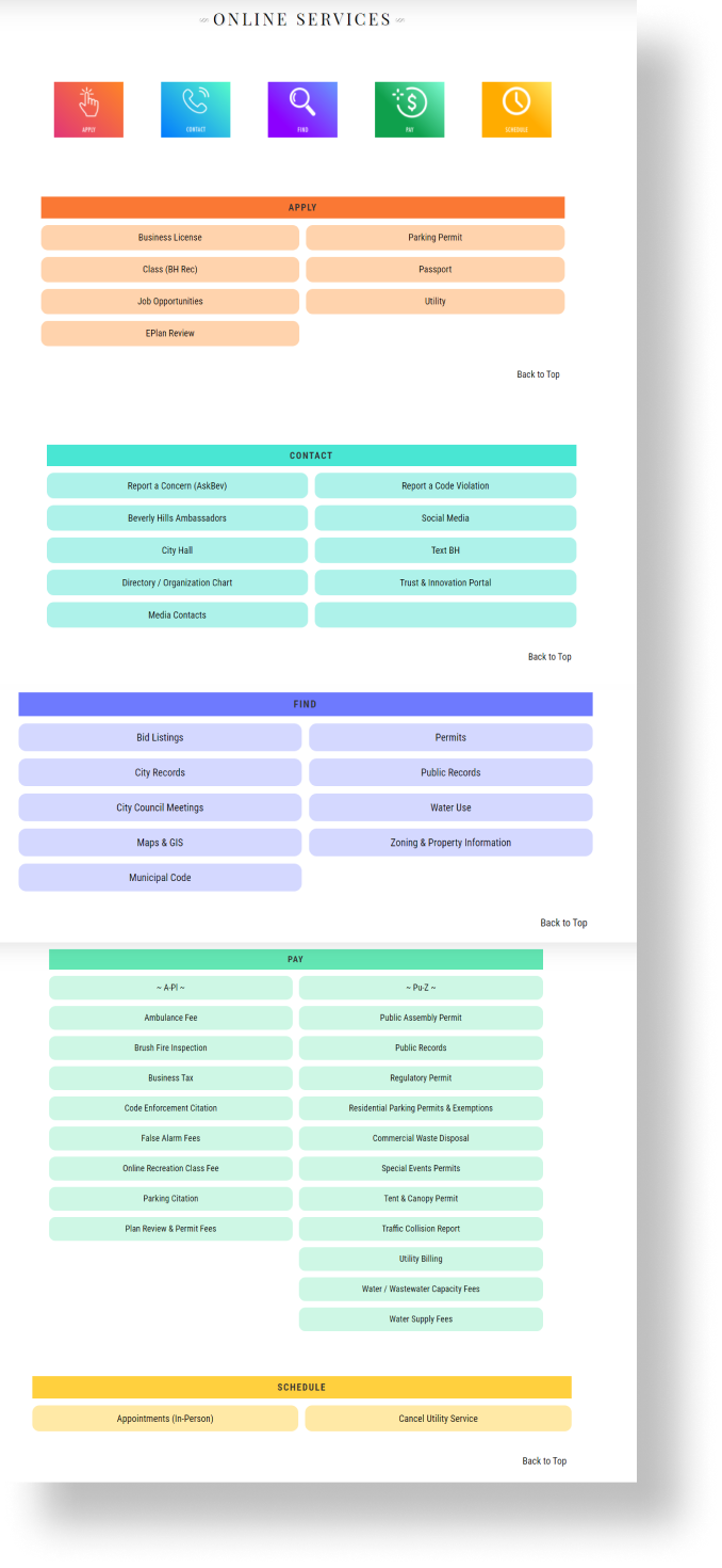 Designed and optimized the Online Services page to streamline access to essential city services for residents and visitors.