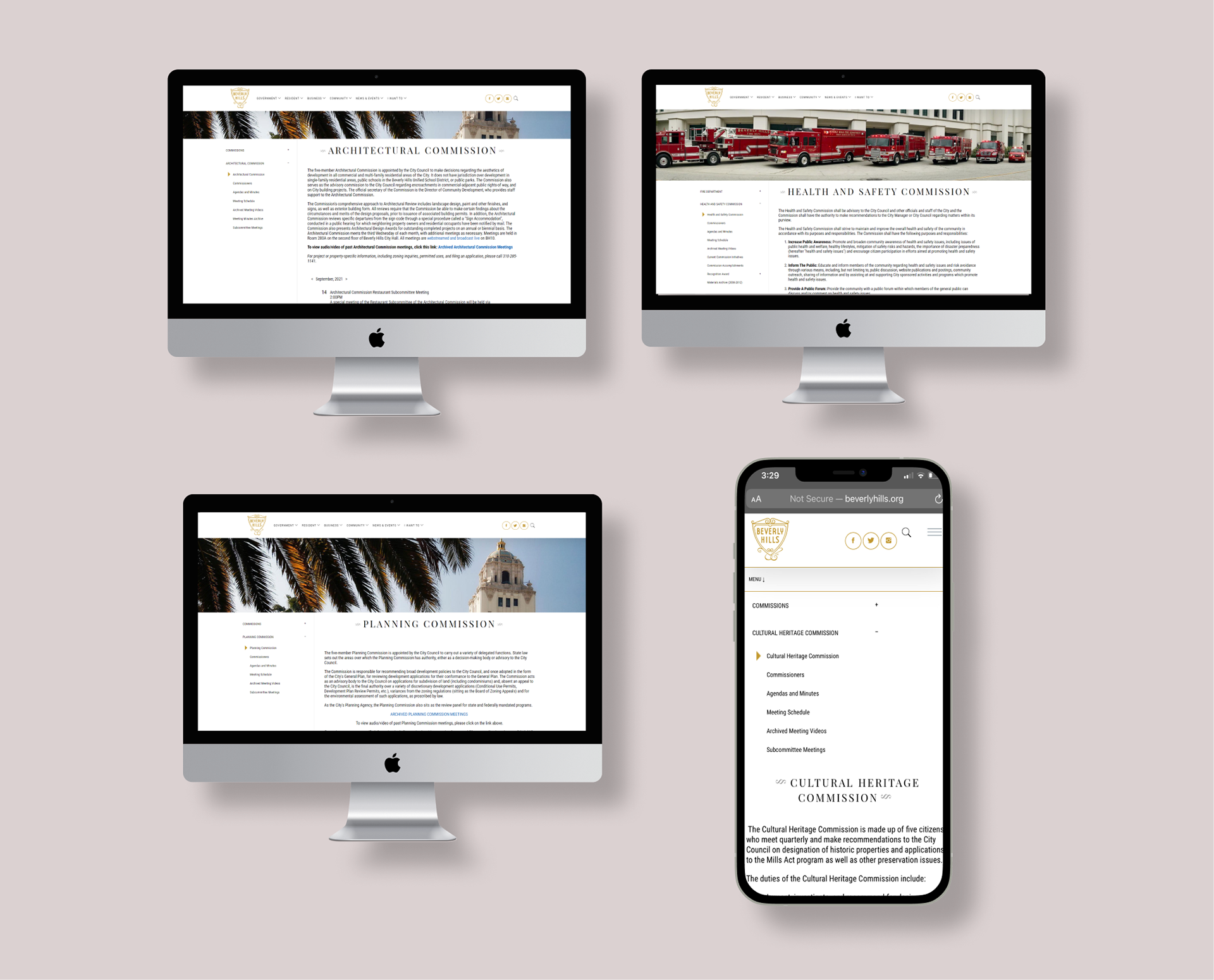 This standardization of the Commission page's top navigation, page structure, and subpage navigation will ensure a cohesive and user-friendly experience for visitors to the Beverly Hills website.
